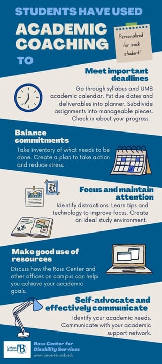 Students registered with the Disability Services office needed a document that would clearly explain the services available In Academic Coaching. The document design needed to be clear, accessible, and attractive while still broad enough to allow for flexibility with the offerings.